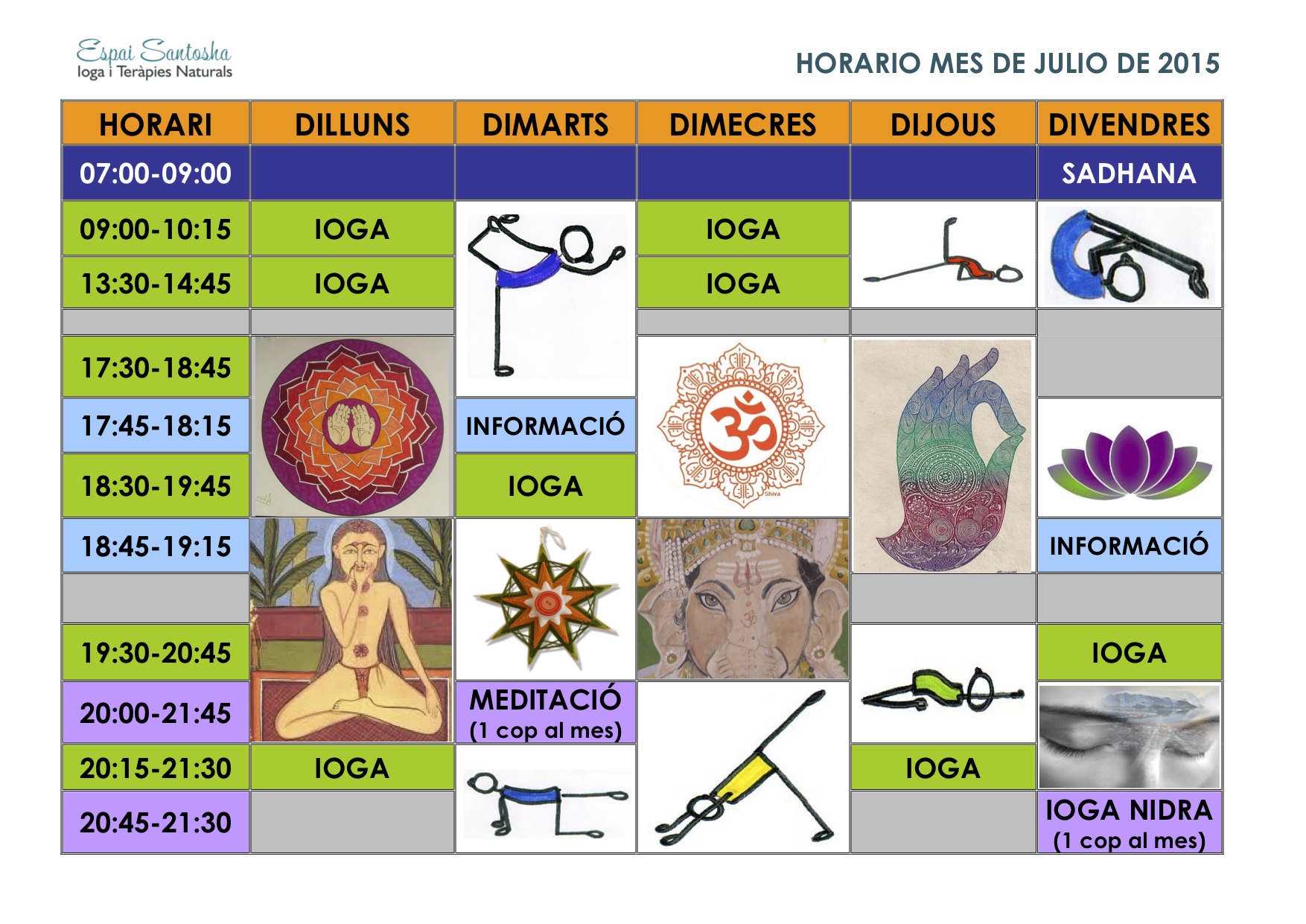 NUEVOS HORARIOS MES DE JULIO 20 sábado Jun 2015 Posted by espaisantosha in Novedades ≈ Comentarios desactivados en NUEVOS HORARIOS MES DE JULIO DURANTE EL MES DE JULIO SE ANULAN LAS CLASES DE YOGA DE LOS SIGUIENTES HORARIOS: – CLASE DE LOS MIÉRCOLES A LAS 19:30h – CLASE DE LOS VIERNES A LAS 17:30h EN EL MES DE SEPTIEMBRE SE VOLVERAN A ABRIR DICHAS CLASES. ComparteTweet Haz clic para enviar un enlace por correo electrónico a un amigo (Se abre en una ventana nueva) Correo electrónico Haz clic para compartir en WhatsApp (Se abre en una ventana nueva) WhatsApp Haz clic para imprimir (Se abre en una ventana nueva) Imprimir Haz clic para compartir en Telegram (Se abre en una ventana nueva) Telegram Me gusta Cargando... Relacionado