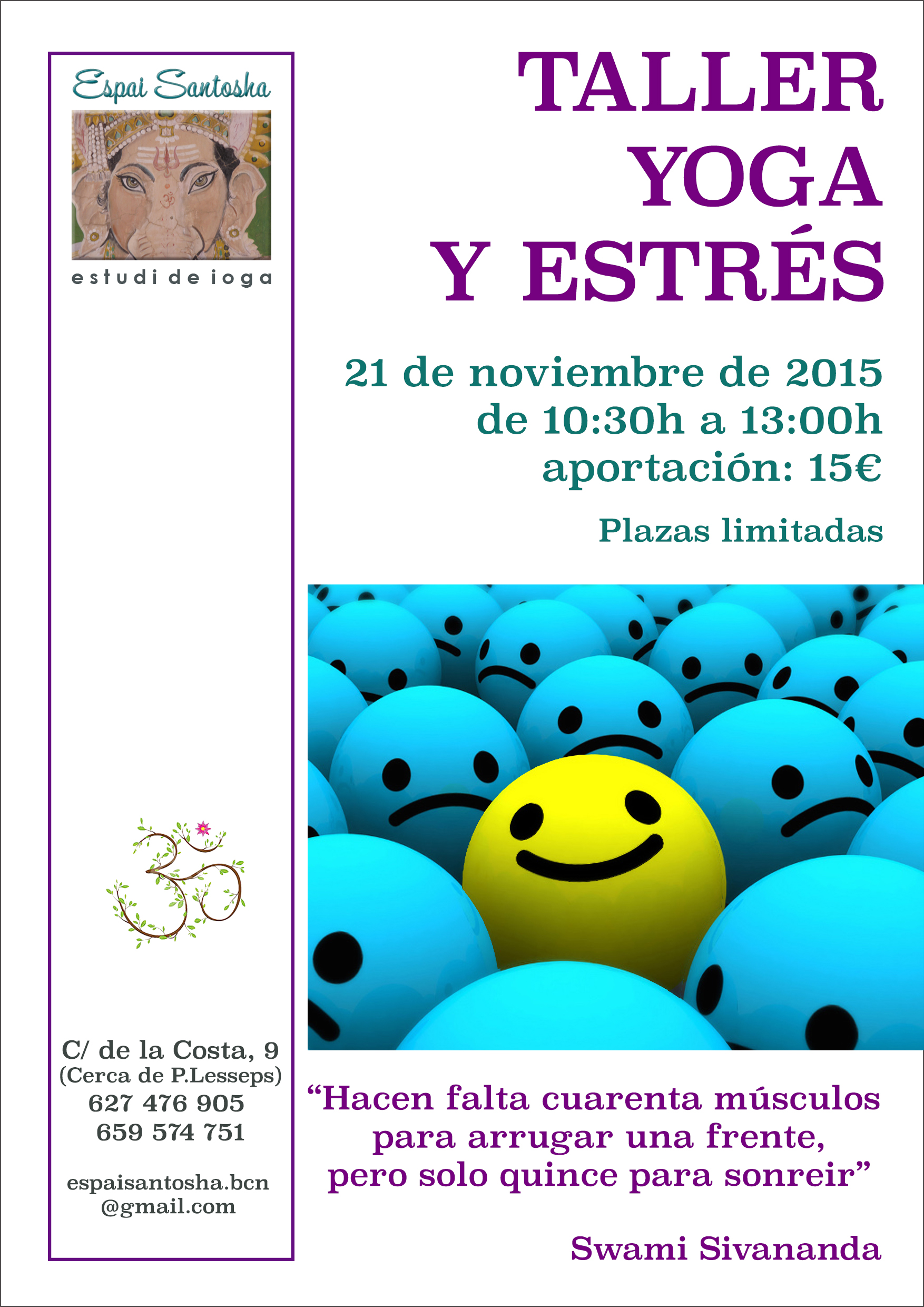 TALLER DE YOGA Y ESTRÉS 08 domingo Nov 2015 Posted by espaisantosha in Novedades ≈ Comentarios desactivados en TALLER DE YOGA Y ESTRÉS SÁBADO 21 DE NOVIEMBRE DE 10:30H A 13:30H APORTACIÓN :15€ TALLER DE YOGA Y ESTRÉS ComparteTweet Haz clic para enviar un enlace por correo electrónico a un amigo (Se abre en una ventana nueva) Correo electrónico Haz clic para compartir en WhatsApp (Se abre en una ventana nueva) WhatsApp Haz clic para imprimir (Se abre en una ventana nueva) Imprimir Haz clic para compartir en Telegram (Se abre en una ventana nueva) Telegram Me gusta Cargando... Relacionado